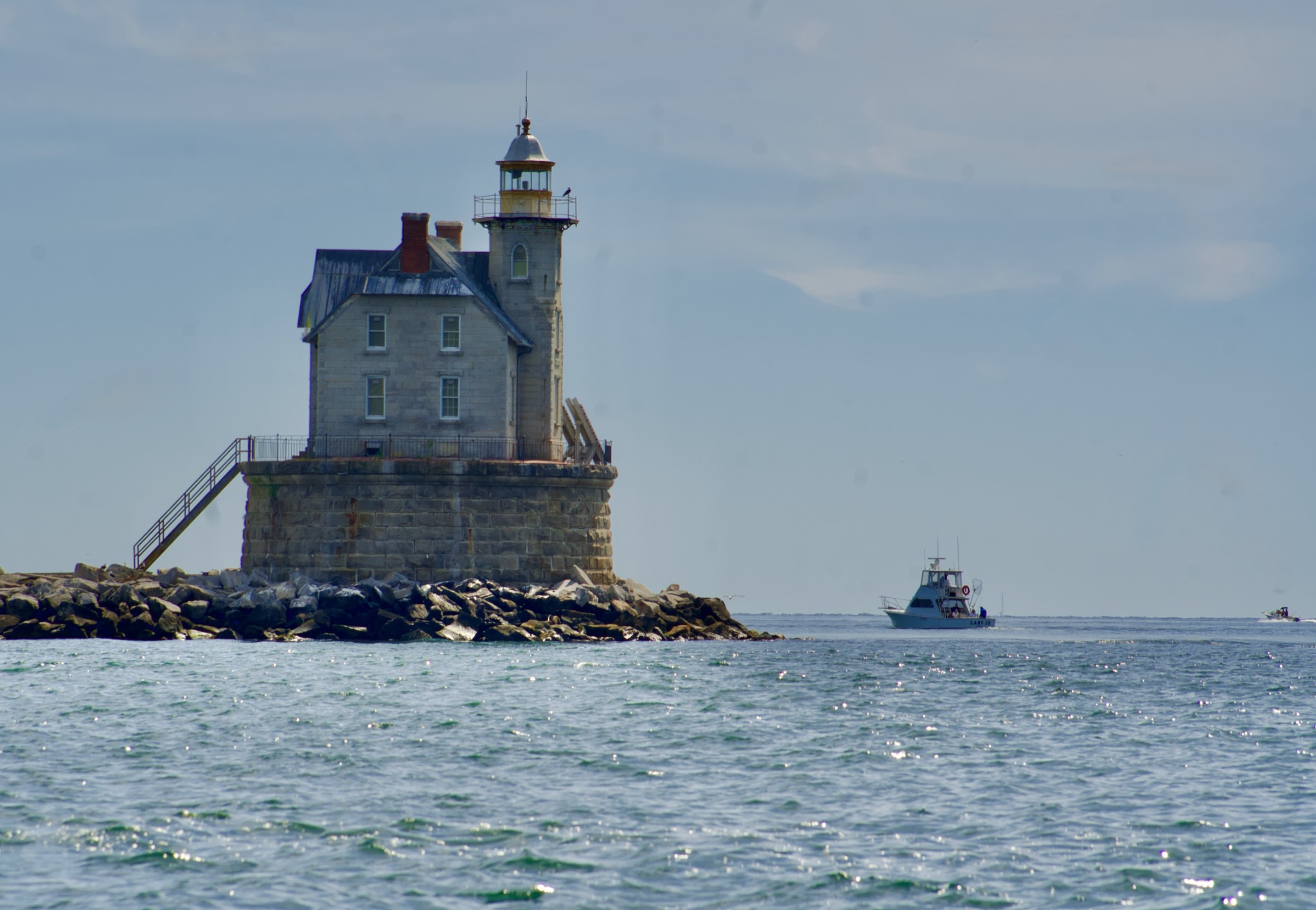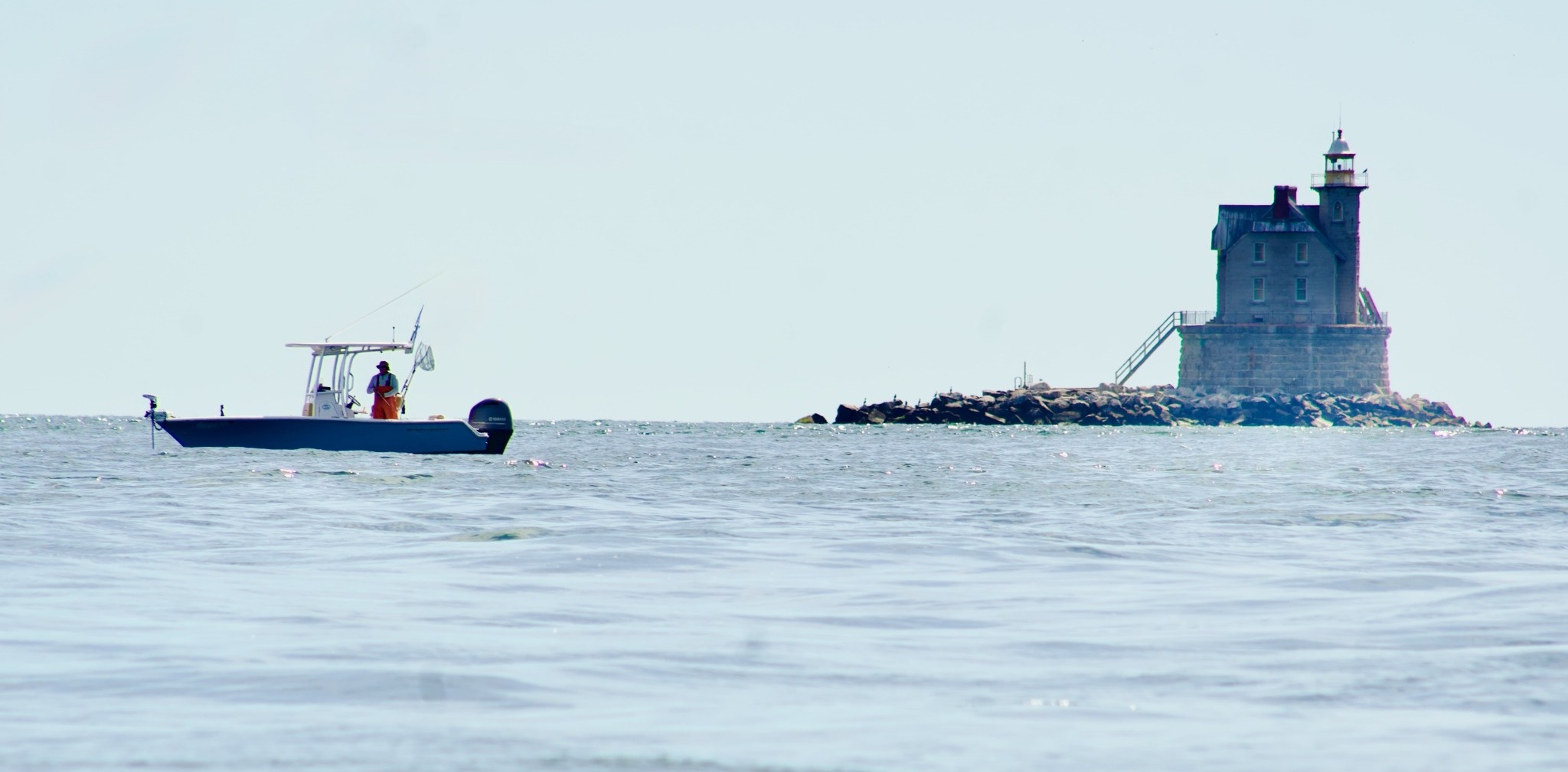 Once again we found that the maritime forecast only vaguely correlated with the actual conditions on the water. One minute we’re gliding comfortably over long, undulating swells, the next we’re bumping over 2-foot chop, clutching the rails to keep from chin planting on the dashboard every time the bow slams down on the surface, cold salt spray spitting back in our faces. In the calmer moments we tried our luck fishing at Bartlett Reef, Race Rock Light House and Seal Rock. All we caught was a few Porgies and a couple Black Bass that were too small to keep. In retrospect, it was just as well. Larger fish from Long Island Sound can have unsafe levels of mercury and PCBs.