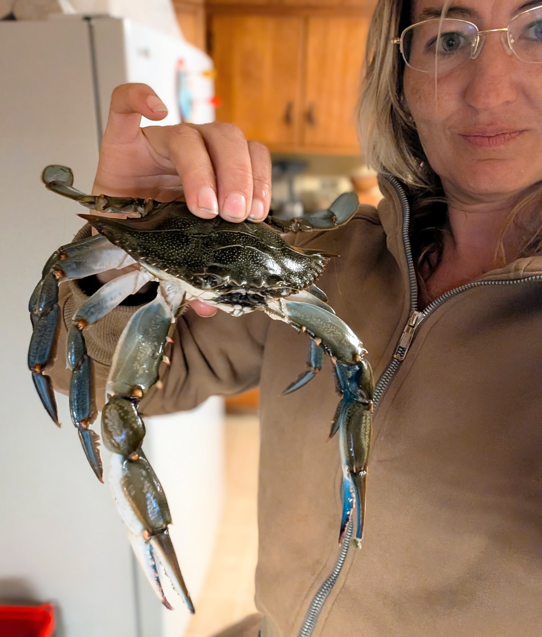 We did catch some unexpected treats back at the State Park. Right across the street from the beach parking lot, a brackish creek flows under a pedestrian bridge, the perfect habitat for blue crab. We hadn’t even brought our crab traps, but we fixed some chicken legs to fishing line tied them to the bridge railing so they dragged on the bottom. Every few minutes we’d check the lines, which were usually found them swarming with crabs. Most of them were smaller than the 5-inch legal limit, and the big ones were big for a reason; they clung tight to the chicken, tearing at the flesh, as we gently pulled the line toward the surface, then dropped off at the last possible second. But the hardest part was getting them out of the net and into the cooler without loosing a fingertip.