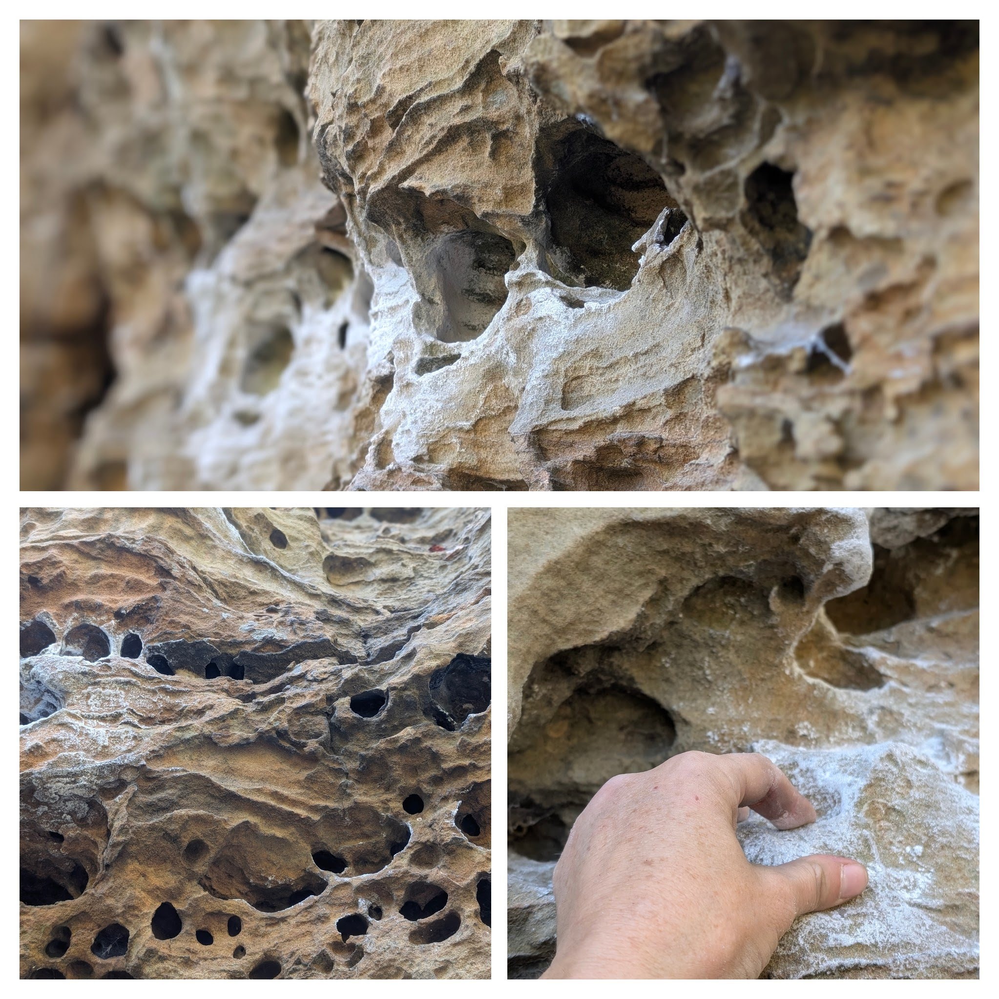 But what makes Corbin sandstone really exciting to climbers are the features, too many to choose from: honey comb pockets you can’t wait to stick your fingers in, and think partially detached dinner plates you can grab onto to pull yourself up.