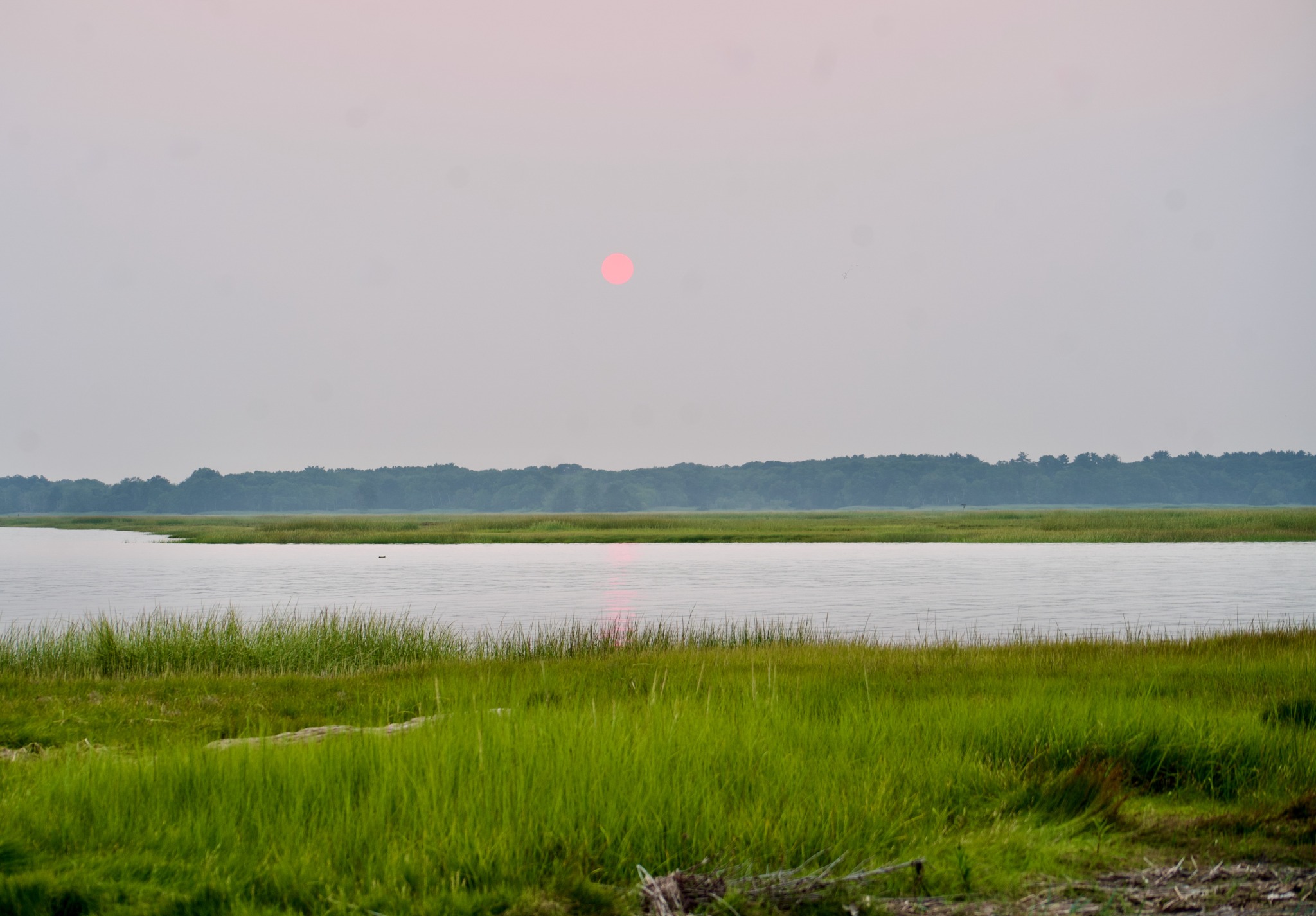 Then there’s the wild strip of sand along the Merrimack, just before it empties into the Atlantic. Maybe not everyone would consider it a proper beach; but I loved the little winding footpaths through the beach grass and wildflowers, the pebbly beach and tide pools of pockmarked limestone. When we arrived the Canadian wildfires were still raging, giving everything an eerie orange cast.
