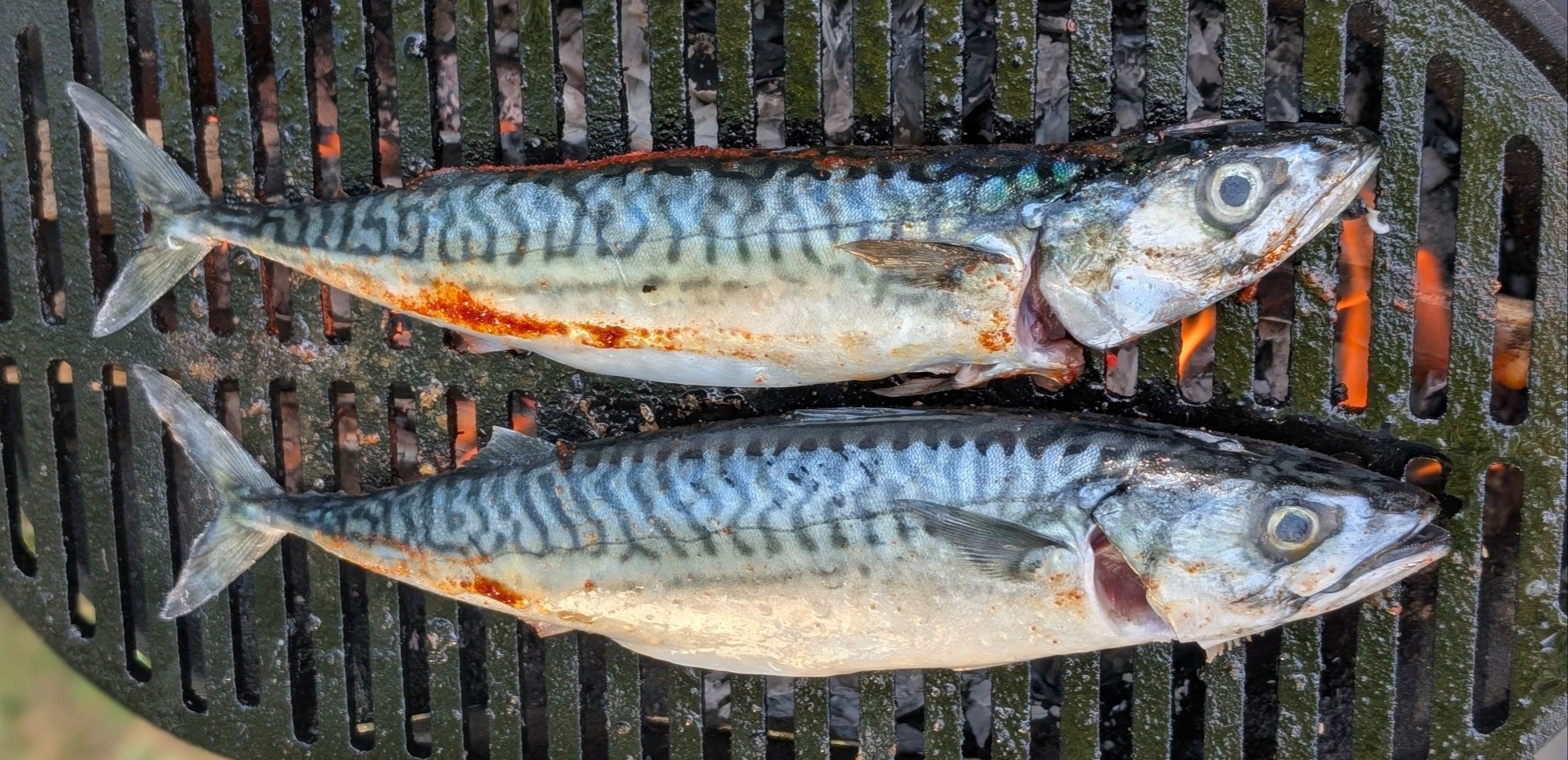 I do, however, have footage of him landing a little mackerel. People mostly use them for bait, but they are underrated for eating, mild and flaky. Best of all, they have no scales, so they’re easy to prep.
